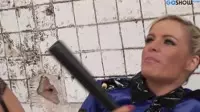 In a sensual, steamy roleplay scenario, the voluptuous blonde policewoman is dressed in her authoritative uniform with a tight skirt, accentuating her firm curves that only added to the anticipation and excitement between her and the captivating brunette prisoner.The sexual chemistry was evident as soon as they crossed paths, their eyes locking from across the room, leading them to seek an underground corner, hidden from the prying eyes of the outside world, where their forbidden desire would finally unleash itself in a fiery fusion of passion.Adhering closely to her strict roleplay uniform and costume, she wore a crisp white blouse, accentuated with the bright, bold blue sash encircling her waist, drawing attention to her supple hips that swayed enticingly as she approached her submissive lover.With heels that left an audible click on the hard tiled floor, echoing with anticipation of what was about to come her black, form-fitting skirt hugged every luscious curve, arousing the curiosity and eagerness of the prisoner.The glossy patent leather gloves she donned were the final touches to the uniform, as the sharp clicks amplified her powerful presence in his presence.As the prisoner's hands began their treacherous descent on her, boldly defying the authority that she embodied, they found a place on the curve of her plump, kissable lips, sparking an uninhibited dance between their eager, exploration-hungry tongues, further igniting the spark between them.Their hunger only grew as their palpable lust led to undressing one another, revealing an array of sultry undergarments that highlighted each curve and caressed every swell her black, lace bustier contrasted starkly against the bold red suspender belt, elevating the stockings that clung to her milky-white legs like a second skin.On all fours in anticipation, with her back arched ever so invitingly, she beckoned the prisoner's dominance, seeking an unfathomable ecstasy between them as their moans grew increasingly louder.The sound of licking and sucking filled the air, as the blonde policewoman gave herself freely to the pleasurable agony inflicted by her ravenous lover's tongue.Every lick that followed the wet sounds against her fleshy mounds brought a rush of shivers down her spine, each movement closer to a quivering climax.This powerful blonde policewoman, submissive and lost in her erotic fantasy as the prisoner dove deep, fingering her into orgasmic oblivion.The room became a tangible playground for her submission every licking of her womanhood, sucking on the wet folds, felt more intense than anything else she had ever experienced, leaving a mark that could only be described as a tantalizing experience, where law and passion collide to create an erotic orgy filled with unforgettable pleasure.