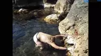 As the waves crash against the rocky shoreline, a fiery desire ignites in our insatiable MILF's soul, her body yearning for fulfillment beneath the hot sun.Naked but for a seductive thong barely concealing her supple curves, she eagerly pleasures herself on a large rock adorned with a natural lubricant as beads of perspiration trickle down her tanned skin, further amplifying her need.Lust swells within her loins like the pounding surf, daring her to partake in uninhibited bliss as she imagines an alluring figure approaching on the distant rocks - a man to satisfy her voracious hunger for flesh.Her natural tits straining against the constraints of her skimpy attire, our star-crossed lover fantasizes about the thrill of being bitten, teased, and conquered by the tempting waves as her nipples pebble with excitement.A moan escapes her lips, her desire escalating in tandem with the tide as each climactic wave approaches.Although there's no one in sight, our sexually adventurous woman dreams of writhing against a stranger who shares her taste for unbridled ecstasy, craving to feel the salty sea spray across their intertwined bodies.Her lips quiver with anticipation as she envisions her perfect lover, his chiseled form dripping with passion as the sun blazes upon them both.Laying flat against the rocks and swallowing in her own wetness, she visualizes the sensual dance of his skilled tongue between her shapely thighs.She arches her back and bites her lip as every erotic touch sends electrical shocks through her veins, urging her on to embrace this forbidden encounter.In her climactic moment, nature mirrors her arousal the waves intensify, thunder crashes in the distance, and with a final, earth-shattering crest - the sea swallows her dreams whole, claiming them as its own in an unforgettable crescendo.Exhausted from her fantasies, she allows herself to drift into a daydream filled with wild, wet, and untamed passions, forever craving the salty taste of her lover's lips pressed against hers on the rocks.
