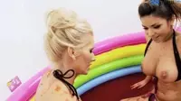 In this lesbian pool party extravaganza, the blonde and brunette seductresses take their sunbathing activities to the extreme, as they inflate a massive pool and proceed to fill it with glistening tomato sauce a sensual treat designed for two adventurous girlfriends who can't get enough of each other's sultry charms.As they indulge in their decadent foreplay, slipping effortlessly into the warm gooey liquid, the sexual excitement reaches boiling point, causing juicy, gluttonous sounds to ripple through the summer heat amplifying their insatiable desires for each other.Submerged beneath the rich, tangy liquid that coats their every curve and valley, they engage in an unrivalled foreplay experience that involves licking each other's labia while slipping eager fingers into the hidden, wet depths of their girlfriend's sex fingering with the intensity of lovers lost at sea.Their nimble hands stroke, spread and glide over one another's hot pussies while their insatiable hunger grows with each plunge.The brunette, with her dark, piercing eyes locked onto her lover's passionate gaze, lowers herself further into the inflatable pool - a siren-like allure that only fuels the blonde's insatiable lust.Their lovemaking transcends physicality as they take turns in exploring every inch of each other.As a woman enjoys pleasing her girlfriend with an oral feast on her clitoris, the other slides her fingers into the eager cunt, stirring up orgasmic whirlwinds within that only heighten their sexual prowess.Inside the steaming tomato sauce bath, they share hot and passionate kisses which make waves throughout the garden as two sun-kissed, passionate women create an unforgettable memory drenched in sensuality and lust.Their arousal escalates to dizzying heights as they take turns in enjoying masturbation licking their lover's firm breasts, tantalizingly squeezing her swollen nipples, slipping their fingers down the crevice of her backside to spread the warm, sticky liquid all over her tender ass.But their adventure doesn't end there as they bring out an array of pleasure toys - from the classic dildo to any other kinky, sex toy, creating a crescendo of climax that could be heard on land and sea.The pool is not only a testament to a day filled with glorious tomato sauce foreplay but also of love and devotion.Their inflatable pool, once filled with tantalizing tomato delights, leaves them feeling sated and satiated, basking in each other's lustrous reflections on their sun-kissed skin.
