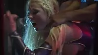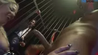 In a dimly lit underground venue, a select few are treated to the sight of a blonde bombshell tied up in an electrifying caged display of carnal desires.With each thumping beat of the music, her slutty nature is revealed, and the roomful of eager men watches with a mix of satisfaction and eager anticipation for what's to come.Her tits, bursting from a tight top, invite attention, as her long blonde hair dances teasingly around her face.As the room fills with hushed excitement, her bound hands leave her with no choice but to suck on their fat cocks, her eager cunt prepared for a rough fucking.The kinky nastiness continues as she licks and sucks all around, each thick cock a new delicacy for her lips and tongue.The energy in the room is palpable, it crackles with an electrifying sexual tension that seems to heighten when the room goes silent, leaving only the sound of wet sloppy blowjobs and gasping breaths as the entire scene unfolds.The blonde sex siren gags on multiple cocks at once, her throat bobbing up and down with each fierce thrust and withdrawal.She swallows around a mouth full, drool cascading down her chin.With each deep sucking, you can almost see her soul becoming further corrupted by the lustful desire to please every last man in the room, one throbbing cock at a time.Those behind the cage can only stare on, some stroking themselves to completion, while others are left wanting more.The blonde's body is covered in the residual glistening of each cock sheâd serviced every drop a testament to her insatiable desire for their man meat.They know, however, that this won't be their final orgasmic encounter, for the true climax still awaits.Her eyes wide with anticipation, she awaits her release into the cage with fervor, eager for another go around.As the crowd reaches its climax, a shared sigh echoes through the air a mixture of satisfaction, relief, and yearning desire to continue such escapades.As her lips purse to conceal a satisfied smirk, she knows that no matter what obstacles lay in front of this Blowbang's ferocious frenzy, the cage is where she truly belongs.It has become more than just a containment device it now signifies her lustful sanctuary with each participant more than willing to partake in this locked carnal celebration of ecstasy.