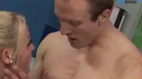 Busty whore exposes her cunt in the office. The man licks her pussy and stimulate the clit. What is more, she gives him a blowjob. After fingering her cunt, she rides him. What is more, he fucks her hard from behind. That bitch is very naughty and enjoys facial. In a sultry office scenario, the blonde, horny whore unzips her tight pencil skirt to reveal her eager cunt, just as her lustfilled colleagues walk in on them.Unfazed by their gaze, she bends over the desk and offers herself, her swollen labia aching for attention.The dudes hand instinctively finds its way down his pants, his dick already growing hard at the sight of this brazen woman.As he unzips, her mouth eagerly envelops his cock, stroking it with her lips while he watches, mesmerized by her oral skills.Meanwhile, one by one, their horny colleagues cannot help but stare as she climaxes around his dick, moaning loudly as the taste of his cum lingers on her tongue.Sensing the room becoming increasingly filled with a crescendoing tension and the unavoidable climax in the work, they all know that an office orgy will take place shortly.With everyone undressing, their naked bodies intertwining in various positions riding him from behind while rubbing her clit with one hand and his own hand gripping on her nipples, she screams in ecstasy as he slams into her cunt with wild fun.The sight of her ass cheeks bouncing enticingly against the rhythm only spurs their fervor on, each and every employee taking turns at pounding her pussy, one by one.The office secretary, a blonde MILF in her 40s, cant help but let out a guttural moan herself as she watches them all the guy who started it off with his slick tongue, the nerdy colleague whose fingers have replaced the absent cock, and everyone else sucking, fingering, fuckingeach one offering her their unique way of giving her orgasms.And when they all decide to climax at once, shooting strings of cum across her sweaty bodylike a hot erotic spiderweb of salty seed, it seems only fitting for the blonde whore to grin like an excited schoolgirl while swallowing their loads.The office now buzzes with the heat of their lust as she takes every facial they all give her before ending the day in a pool of cum.The orgasms keep flowing, their energy in sync one in the room is a beautiful reflection of what eroticism and fulfillment truly are.This day at work has ended like no other, with Climax being more than just an expectation its the definition of euphoria that pervades the office long after they leave.