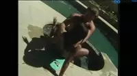 As the sun sets lazily over the horizon, casting a warm golden glow on the luxurious poolside oasis, a couple begins to revel in an intimate exchange of carnal passion.With eyes locked on one another, they feed each other a feverish exchange of wet, sloppy kisses as hands fervently roam over taught muscles, pulling both bodies closer into their loving embrace.He kneels between her shapely legs as he lays claim to the sweetest part of her, his eager tongue diving into a place where the very essence of ecstasy awaits.The ebony goddess sighs with an almost primal contentment as she revels in the attentions of her lover.Skin-tight denim shorts have been shed, revealing a pert derriere which becomes the new center of attention.His hand comes down gently, playing over the contours of her womanly curves until he's found what he'd been searching for – a place where two become as one in an impassioned moment.Their moans intertwine with the laughter of water in the distance, forming a cacophony of lust that rings through the summer air.The sound of her breathlessness mixes perfectly with his low growls of ecstasy, punctuated by the gentle slapping sound of skin against skin as their bodies entwine even further, moving to the rhythm of heartbeats set against one another.The taste and scent of passion fills the air, their lovemaking so intense that it could burn away the daylight, leaving behind only echoes of their love in its wake.A gentle trickle down her leg draws his attention upward a glistening treasure awaits him as she surrenders to the heat between her thighs.Arousal-soaked skin calls out for his touch like a lover's whispers, and he answers with devotion, seeking the ultimate climax that they seek together in their shared quest for pleasure.His own swollen tool, encased in black denim, now calls out in its own desire the heavy weight of anticipation weighing down the anticipatory groin as it springs to life in response to her loving hands, so willing and eager, teasing with dexterous fingers.It's a silent plea, yearning for release as she fondles, pulls, and sucks, each movement drawing his mind closer to that explosive point of no return.Fucking, poolside, outdoors – all the pieces falling into place like puzzle pieces finding their home.Their lovemaking, raw and uninhibited, carries on until nothing else exists but them and the exquisite ecstasy surging through every pore.An inferno ignited and spread across willing flesh sweat slicked skin under hot breath and cool pool water merging together in a dance of passion as an erotic symphony fills their world.