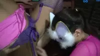 In the depths of a twisted and indulgent masquerade party lies a wild fantasy unfolding before everyone's eager eyes - Crazy Sex Masquerade, where the boundaries between reality and fantasy are blurred.Dressed to fun in their exquisite French maid outfits, two girls, both captivatingly stunning and highly aroused by this masked ball of pleasure, are more than willing participants in their upcoming kinky escapades.The erotic dance begins as they seductively swirl around each other, their curves accentuated by the tight-fitting maid uniforms, drawing lustful stares from the room full of eager participants.The intoxicating anticipation is building, a shared yearning fills the air, creating a palpable tension that's both exhilarating and nerve-wracking at once.The masked man by one girl starts whispering naughty suggestions into her ear, his lips leaving hot breathy caresses on her exposed neck, heightening the excitement.The other girl, unable to resist, decides to take matters into her own hands - or rather, between her kitty lips.She takes out an eagerly vibrating tool of pleasure and starts teasing the bulging crotch that's hidden beneath the luxurious fabrics.As one starts to deepthroat his thick cock down her throat while humming in a submissive manner, the other girl continues to grind herself on him.This tantalizing combination of oral and penetration leaves them both teetering at the edge of their sexual climax, gasping and moaning uncontrollably as they indulge in this carnal satisfaction.The second man in attendance, wearing a mask that suggests an air of mysterious dominance and control, takes a position behind the first girl, ready to partake in some thrilling doggystyle action.He grips her waist firmly while sinking his own rigid rod into her wet cunt, making sure he penetrates deep enough to leave a lasting impression both in her memory and hers on the uniform's costume.As they reach their glorious climax, covering each other with their intense orgasms, it's truly evident that this masquerade ball is one for the ages.The room turns into a haven of unfiltered lust and unrestrained pleasures where boundaries are broken, fantasies are explored, and limits shattered in an incredible, erotic showcase of indulgence and debauchery.No longer bound by their elaborate uniforms and hidden behind their protective masks, the two girls explore the thrilling realms of their darkest desires with unabashed enthusiasm.As the men thrust vigorously and forcefully, they spurt forth torrents of cum over their bodies like a sexual waterfall, mixing their fluids together into one euphoric symphony that would go down as one of the most unforgettable orgies in history.And so it begins an extraordinary adventure deep into the unknown territories of sexual pleasure and masqueraded mayhem.