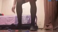 Shameless crossdresser in a sexy dress and black stockings penetrates his ass. He plays with a dildo from behind. While a sex-toy hides in his ass, he's stroking his dick. He spreads her legs and stroking his dick while dildo hides in his ass. It brings him a pleasure.
