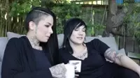 Tattooed lesbians enjoy an intimacy time together. They are kissing and fingering each other. Horny and wet enjoy pussy's licking and clit's stimulation. Both are very passionate. The scene begins with two heavily tattooed inked girls, emanating an emo vibe, passionately embracing each other in a room that is filled with the scent of their lust and desire.Their tattoos cover their bodies, forming intricate patterns that seem to move with them as they intertwine their dark pierced nipples.As they continue to kiss deeply, they pull back slightly, their dark, horny eyes locked onto each other.Without wasting any time, one of the girls drops down on her knees and begins a deep licking of the pierced cunt.Her hands skillfully glide up and down between the pierced womans spread legs, fingering her with an intense passion that makes her pussy lips glisten with desire.Meanwhile, the recipient of the oral pleasure hugs the other, passionately whispering in her ear as her fingers find their way into the lovers wet pussy, ensuring masturbation and clit stimulation for a truly unforgettable time.These inked girls are not afraid to explore and express their mutual love and desire for each other.The deep, rhythmic licking of the clit by one girl, coupled with her pierced lovers fingers that found every sensitive part they needed, sent them both into a world of climaxinduced ecstasy, with cunts and clits pulsating with electric waves of pleasure.Their passionate lovemaking wasnt restricted to just oral sex, though.As their fervour heightened, it turned more intense, culminating in mutual masturbation, each tattooed woman rubbing her pussy lips for each other as their hands moved skillfully over the erogenous zones of their loversâ labia.Each stimulating action sent shivers of pleasure coursing through their bodies, causing their tattoos to vibrate with energy and passion.The womens hair their crowning glory cascaded over their bodies, the strands intertwining and tangling in a loving embrace.It was truly an intimate encounter between two pierced lovers, a moment that celebrated their love and erotic desire for each other in an alluring, passionate display.The two women hugged and whispered sweet nothings into each others ears, signaling the end of their passionfuelled rendezvous and as they did, it was as though time had stood still.All that remained were two exhausted, yet sated tattooed women lying side by side on the bed, sharing a kiss that bore no secrets left unsaid.