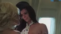 In a secluded corner of the aircraft's dimly-lit cockpit, the two female stewardesses - both donning their crisp, high-end flight attendant uniforms - began to feel an insatiable hunger for each other that neither could deny.It was a hot summer afternoon and a powerful airplane hummed overhead as these two bold women found themselves unexpectedly tangled up in the captivating thrall of uncharted desires and secret affections.Little did they know, the heat rising from their burning loins would set the very air alight, creating a sensual tornado that neither could escape.Underneath the stifling uniform jackets lay voluptuous, perfectly round tits with tightened nipples begging for attention.They pressed themselves against each other's chests, seeking the much needed relief in an unexpected caress of two women daring to explore beyond their societal norms and limits.The chilling coolness of the airplane intertwined with the heated passion simmered within both flight attendants as they held back no inhibitions a sight no one could dare witness without indulging in the same insatiable thrill.Unzipping their uniform pants, one stewardess spread herself open wide, her shaved legs acting as a platform to showcase her secret garden that yearned for her newfound lover's attention.The other woman wasted no time reciprocating the gesture, falling into a playful tryst of licking and fingering one another, the sight being nothing short of a dreamy fantasy come alive in the muffled corners of the cockpit.Both had found solace in each others' wet pussies as their fingers dug deep inside, caressing each other's sensitive inner labia, with eyes closed and souls intertwined in an intimate display of sensual lovemaking.The room filled up with the scent of horny women indulging in secret delights - the smell of womanly cunts interlaced with their perfume from uniformed workdays - becoming an aphrodisiac that even the sturdy walls couldn't bear.Their intense moans of pleasure pierced through the metal beast's core, causing vibrators and dildos concealed within their carry-on bags to quiver in synchrony, each drenched with honeyed nectar from between the women's panting lips as they shared uncontrollable, mutual pleasure in an erotic flight that would live in infamy for years to come.From the moment this mid-flight tryst had begun until its explosive crescendo, it was not only a demonstration of the unapologetic power within two determined lesbian flight attendants.It was a triumph against their own inhibitions that spanned through every corner of the aircraft, transforming their sexual adventure into an unforgettable experience for the daring souls on board.Despite the unseen enemy of time ticking away on them and the inevitable goodbyes they'd have to face, in this moment of truth, there lay a shared secret that continued to burn and flicker within their minds and hearts - a treasure of stolen pleasure that only they had discovered and no one else could ever steal.