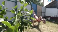 She enjoys wonderful weather and stimulates her pussy outdoor. Naughty one plays with her cunt on the hammock. Horny bitch is dreaming about a horny lover. In the sundrenched outdoors, our blonde temptress revels in the warm weather, taking the opportunity to satisfy her lustful desires alone under the clear blue sky.As she basks in the invigorating rays, she begins to tease herself, feeling a sense of naughty exhilaration playing with her most intimate parts.Splayed out on the hammock swaying gently, she delves into the throes of masturbation, savoring the forbidden pleasure it brings.With the sun shimmering above and birds singing around her, the horny bitch dreams of a passionate encounter with an insatiable lover as her fingers work in tandem with her mind to bring about a state of pure bliss.It is not long until she surrenders herself entirely to the rhythm of pleasure and desire.A moan escapes her, barely audible over the murmurs of nature around her, as she delicately pinches and flicks at her tender flesh on the hammock, relishing in the heightened sensations that dance through her body.She envisions an ideal lover whose hands would be skilled and eager to explore her delicate desires.With every stroke of her fingers across her sensitive skin, she is immersed in a world filled with fantasy and lust.The suns warmth merges seamlessly with the wet heat of her longing as the blonde masturbates, surrendering to the elements and the memories that fuel her passion.And so she carries on, writhing on her hammock, a living breathing canvas of sensual pleasure outdoors, alone, unashamed.Stimulating, teasing, savoring.The woman on the hammock loses herself in her reverie and her touch until her release is near.It comes at last with an eruption of desire, as if nature itself had reached climax in her honor.With newfound energy and a sense of fulfillment washing over her, she slowly awakens from her dreaminduced orgasm, craving more of this heavenly experience to indulge herself once again.In the end, her solo act under the warm sunlight and amidst the vibrant life around her has been nothing short of exquisite a testament to her unabashed longing for pleasure.From the soft whispers of nature to the unrepentant passion she holds within, the blondes outdoor adventure has transcended the ordinary and delved into the realm of her wildest fantasies realized in an oasis of blissful, horny abandon.