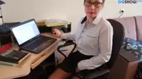 Eyeglasses mature secretary in black stockings is fingering herself. Tired of working, she dreams about hard dick in her cunt. She spreads her legs and plays with the pussy on the chair. She is very horny and wet. The hot, mature milf secretary slips on her glasses and seductively slides on her black stockings, already wet just thinking about the hard dick she has always craved for in her tight cunt.With each movement, her fingers slide along her pulsating pussy as she spreads her legs wide open.She is insatiably horny and desperately aching for satisfaction, rubbing herself faster on the wooden chair with passion and desire for cockfilled ecstasy.Her breath comes heavy as she imagines the powerful thrusting of an enormous member, feeling each powerful pump against her sensitive walls as her clit swells from hunger for a relentless hard fuck.As she nears orgasm, the black stockings caress her supple legs, teasingly making her long for that hard, wet fucking even more.While fingering herself and edging closer to climax, the erotically dressed milf secretarys glasses dangle seductively from her forehead as her eyes roll into the back of her head with each teasing touch of her fingers.The nylon lingerie she donned beneath her skirt tugs and pulls at her voluptuous curves, heightening her arousal further with each tease.Desperate to release this builtup tension from an intense day at work, she dreams up each and every moment of the erotic experience that only climaxes in her mind as her hands eagerly continue their wild journey between her thighs, fueling each fantasy with passionate fervor.Though these fantasies provide a small taste of heaven for the secretarial milf, it is but an endless desire for an unfulfillable dream, leaving her only to savor the memory and the anticipation of another day spent dreaming about it, all while she continues to tease that wet pussy, yearning for a mans hard dick.And when she finally finds her release, it is a glorious mix of ecstasy, agony, and longing for even more a true representation of the passionate and insatiable sexual appetites of the mature milf secretary.